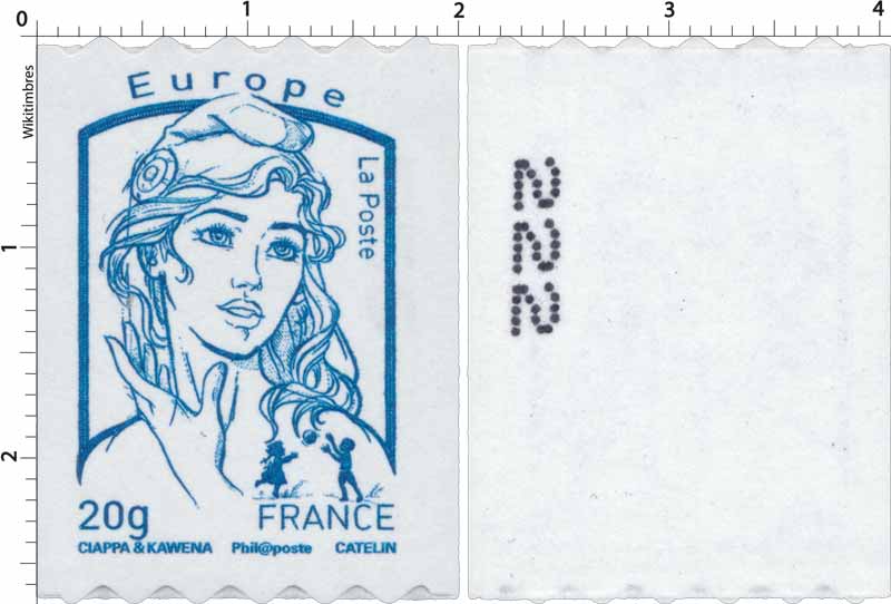 | Description | Roulette autoadhésive Marianne bleu - Europe 20 g |