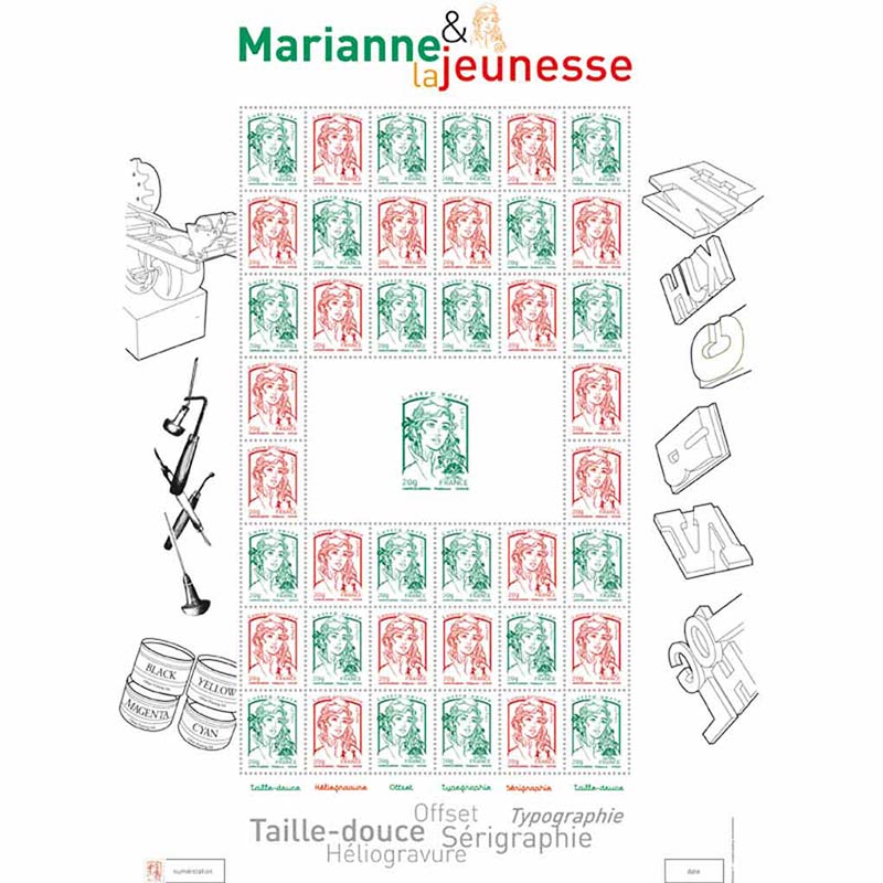 | Description | Feuille de 41 timbres Marianne et la jeunesse : 20 timbres Rouge et 20 timbres verts + 1 maxi timbre vert |