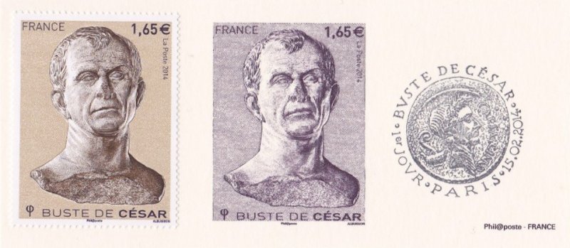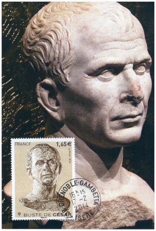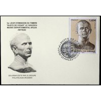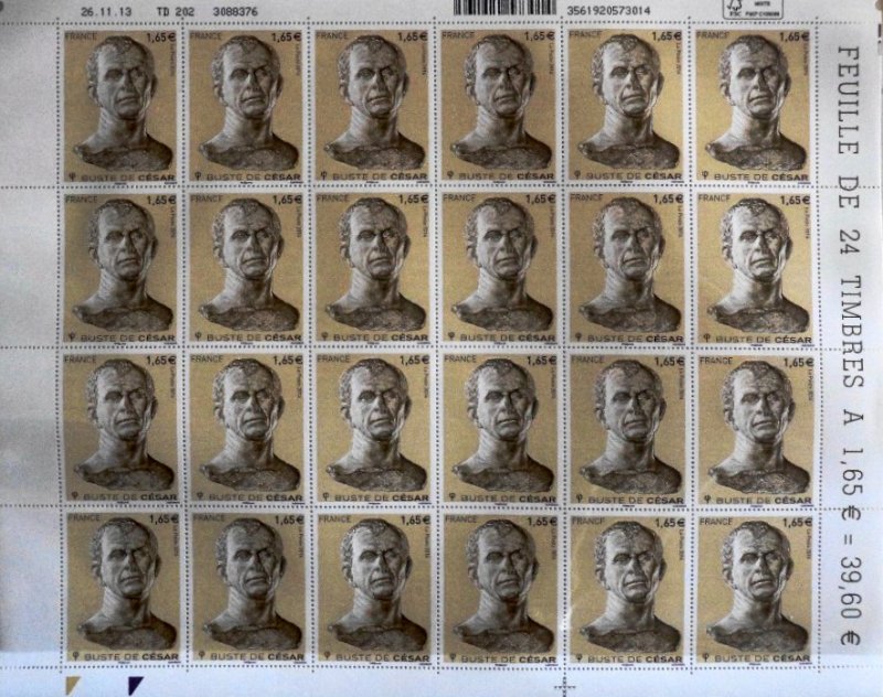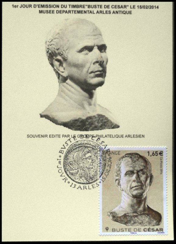 | Commentaire | Imposition : 4 bandes de 6 TP / Timbre à date “Premier Jour” conçu par Louis Arquer En savoir plus sur Wikipédia : César, le Rhône pour mémoire Automne 2007, Arles. À l’issue de près de vingt années de fouilles, une équipe de recherches archéologiques subaquatiques menées par le professeur Luc Long fait remonter du Rhône une trentaine d’objets provenant d’un navire antique, dont un buste en marbre blanc, portrait inédit de Jules César. Il s’agirait de la plus ancienne représentation du général, homme politique et écrivain romain et sans doute le seul réalisé de son vivant, ce qui en fait une découvert archéologique majeure. Typique de la série des portraits réalistes d’époque républicaine (calvitie, traits dus à l’âge), ce buste date sans doute de la création de l’Arles romaine et du séjour de César dans la ville en 46 avant Jésus-Christ. Si certains chercheurs britanniques ou allemands ont pu contester l’attribution de la sculpture à César, les plus grands spécialistes de l’histoire romaine, dont Christian Goudineau, professeur au Collège de France, en ont confirmé l’authenticité. Il est conservé au Musée départemental d’Arles.