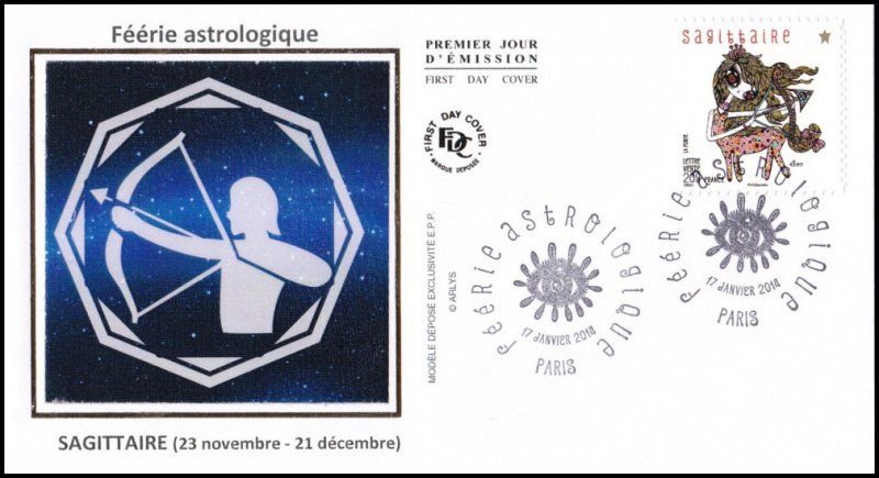 | Commentaire | Timbre à date “Premier Jour” conçu par Valérie Besser à partir du dessin de Ciou. 1er jour au carré d'encre le 17/01/2014 En savoir plus sur CIOU : son site |