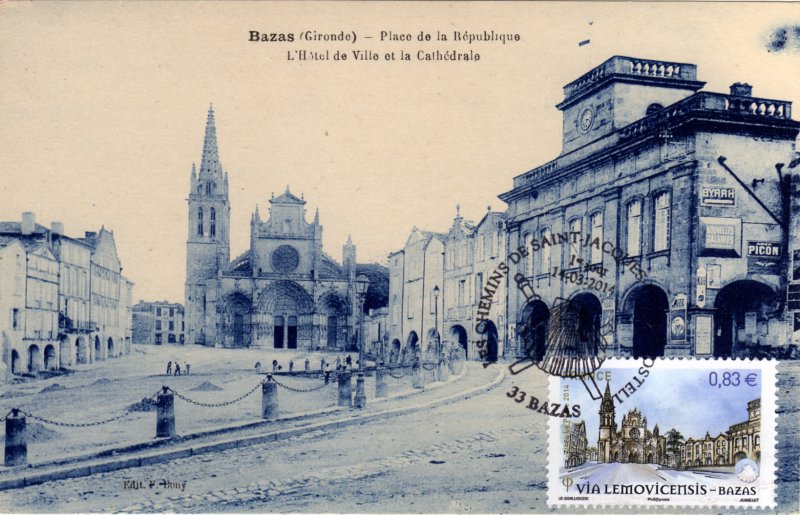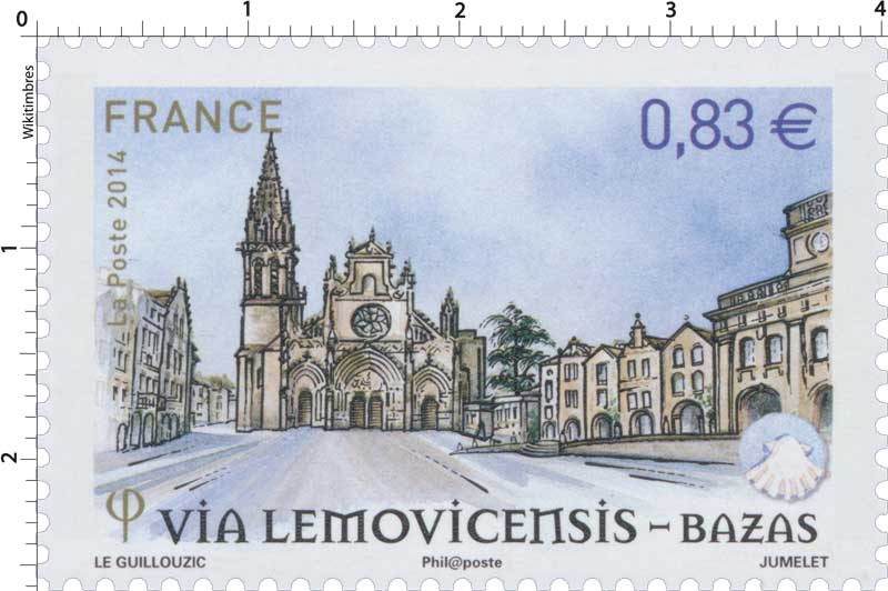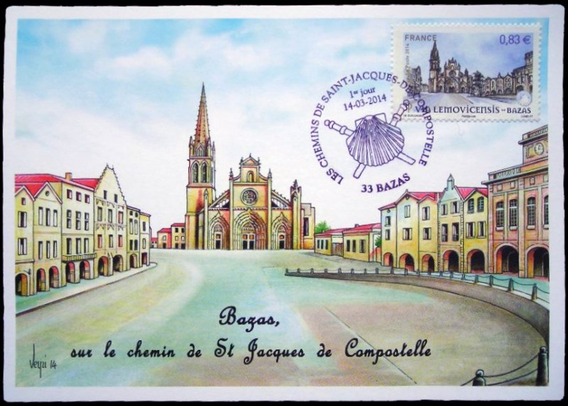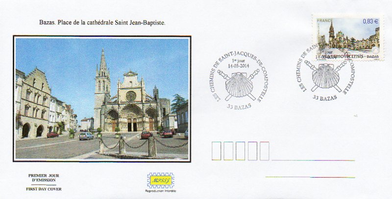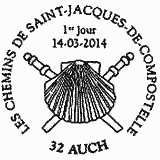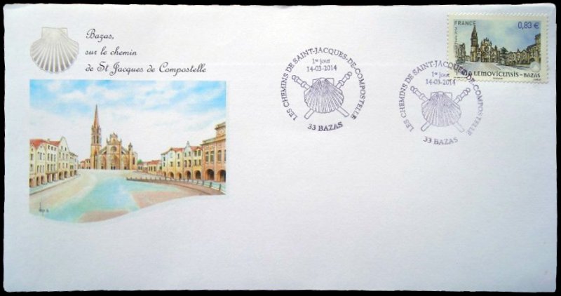 | Commentaire | Timbre à date “Premier Jour” conçu par I. Ochoa Troisième et avant dernier volet de la série annuelle "Les chemins de Saint-Jacques-de–Compostelle" En savoir plus sur Wikipédia : Via Lemovicensis |
