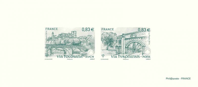 | Description | Issue du bloc de 4 timbres illustrant des chemins célèbres : via Tolosana |