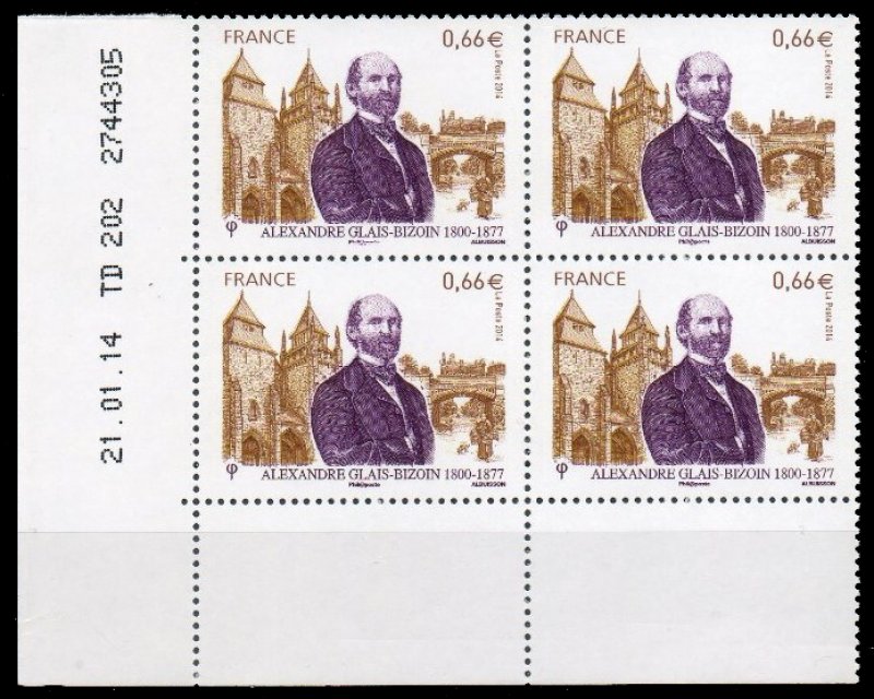 | Commentaire | Imposition des TP : 6 bandes de 8 TP Voir sur le site du CLUB PHILATELIQUE BRIOCHIN Timbre à date “Premier Jour” conçu par Claude Perchat Homme politique, Alexandre Glais-Bizoin est né à Quintin (Côtes-du- Nord, aujourd’hui Côte d’Armor) en 1800, et décédé à Saint-Brieuc en 1877. Après des études de droit, il est avocat à Rennes et se lance très vite en politique. Conseiller général de son département, il est élu député de Loudéac de 1831 à 1848. En juin 1848, il fonde avec Eugène Pelletan et Hérold le journal démocratique La Tribune française et en 1870, il engage Émile Zola comme secrétaire. Député de Paris en 1869, le 4 septembre 1870, lors de la proclamation de la République, il est porté au gouvernement de la Défense nationale avec Crémieux et Fourichon. Arrêté par la Commune, relâché, puis incarcéré à Versailles, il échoue aux élections de 1871 et se retire dans son domaine de La Tour de Cesson. Il écrit des essais dramatiques comme Le Vrai Courage en 1868 et ses mémoires, Dictature de cinq mois, en 1872. Deux grandes causes sont rattachées à son nom. Citons d’abord sa lutte de dix ans pour la réforme postale qui permet la mise en place d’une taxe postale unique pour le transport des lettres, quelle que soit la distance parcourue. Il est également un ardent défenseur de l’arrivée du train en Bretagne et obtient des crédits nécessaires à la construction d’une ligne de Paris à Brest. La ligne atteint Rennes en 1857, se prolonge jusqu’à Saint Brieuc en 1863 pour atteindre son point final en 1865 à Brest. |