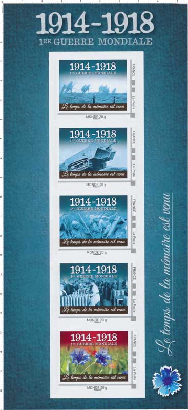 | Commentaire | Il existe également un coffret qui regroupe ces 4 collectors En savoir plus sur Wikipédia : Première Guerre mondiale À l’occasion du 100e anniversaire de la Première Guerre mondiale et du 70e anniversaire du débarquement de la Seconde Guerre mondiale, La Poste rend hommage aux hommes et aux femmes engagés dans ces conflits au travers de la collection “Timbres Mémoire de Guerres” Insolites et poignants, les livrets-collector 14-18 et 39-45 retracent, en récits et en photos, ces 2 grandes guerres au fil de 5 thématiques : mémoire de guerre, mémoire du front, mémoire de soldats, mémoire de civils et un bleuet pour mémoire. |