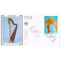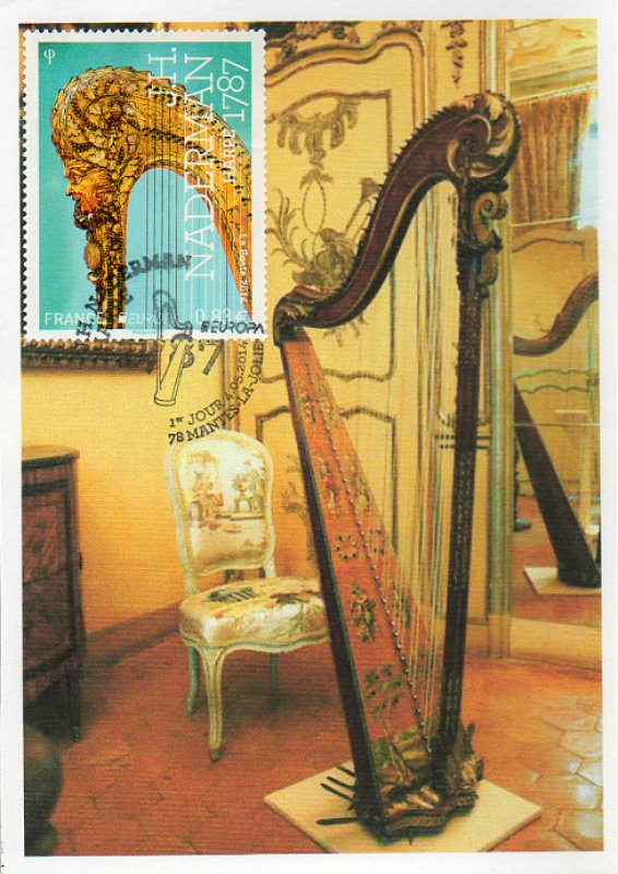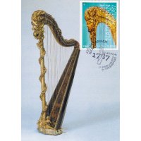 | Commentaire | Timbre à date “Premier Jour” conçu par les Designers Anonymes Imposition : 5 bandes de 6 TP En savoir plus sur Wikipédia : Harpe Instrument universel, la harpe apparaît en Égypte au troisième millénaire avant notre ère, peut-être même antérieurement et, sous différentes formes, en Mésopotamie, en Afrique et en Asie. Elle parvient en Europe au Moyen-Âge, entre le VIIIe et le XIIe siècle, associée à l’image biblique du roi David dans l’iconographie chrétienne. De forme triangulaire et asymétrique, elle dispose de cordes de longueur inégale tendues entre la “console” et la “caisse de résonance”. Le nombre de cordes varie à l’époque de 21 à 28. Instrument diatonique (échelle musicale ne comportant que 5 tons et 2 demi-tons), la harpe est améliorée au cours des siècles, par l’introduction d’une double rangée de cordes et de pédales permettant des modulations plus fines. Une harpe chromatique est inventée à la fi n du XIXe siècle, comportant deux plans de cordes croisées, elle est finalement abandonnée au profit de la harpe à pédales à double mouvement dotée d’un mouvement à fourchettes, permettant de monter ou diminuer à volonté chaque corde d’un demi-ton. Il existe aujourd’hui de nombreuses variétés de harpes (celtique, andine, chinoise, mexicaine...). En Europe, on connaît surtout la “harpe classique” utilisée dans les orchestres, qui comporte de 40 à 47 cordes, ainsi qu’un jeu de 7 pédales, qui permet de jouer sur 6 octaves. Jean Henri Naderman, dont l’instrument est présenté sur le timbre était le luthier de la reine Marie-Antoinette. |