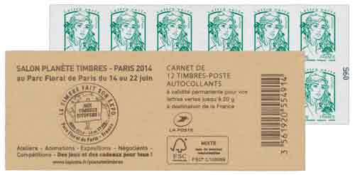 | Description | Carnet Marianne Salon du Timbre 2014 - Lettre verte 20 g |