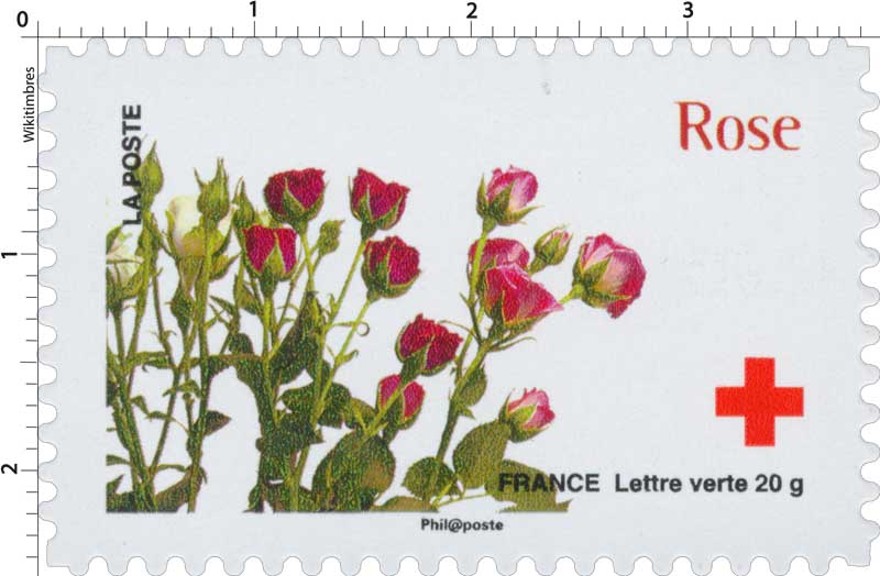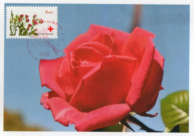 | Commentaire | 150e Anniversaire de la Croix-Rouge française Timbre à date “Premier Jour” conçu par Agence 1440 Publishing En savoir plus sur Wikipédia : Rose (fleur) |