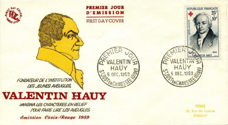 | Description | Au profit de la Croix-Rouge française. Valentin Haüy (1745-1822), pionnier de la lecture pour les aveugles, né à Saint-Just-en-Chaussée |