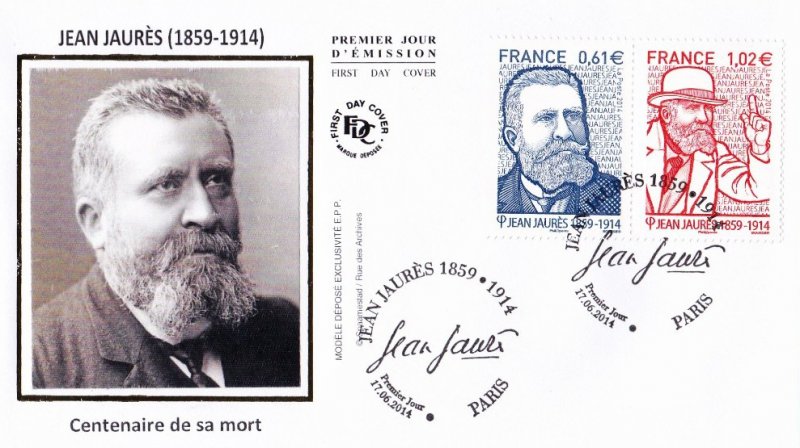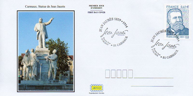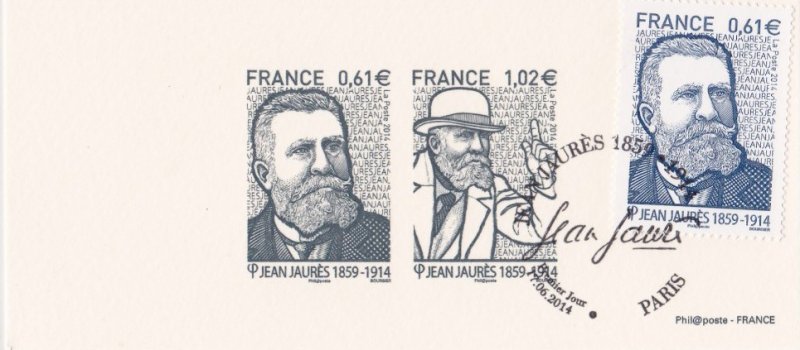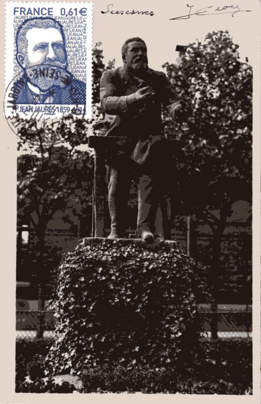 | Commentaire | En savoir plus sur Wikipédia : Jean Jaurès Imposition : 6 bandes de 4 diptyques Une version adhésive de ce timbre est émise en sept. 2014 : voir le timbre Né à Castres en 1859 dans une famille bourgeoise, Jean Jaurès est l’une des figures majeures du socialisme français. Il fait de brillantes études, arrive premier à l’École Normale Supérieure et troisième à l’agrégation de philosophie. Professeur de philosophie au lycée d’Albi en 1881, il fait ses premiers pas en politique à 25 ans. Élu député à Castres en 1885, Il est battu aux élections de Carmaux, dans le Tarn, en 1889 et reprend son poste d’enseignant à Toulouse. La grève des mineurs de Carmaux en 1892 le convertit au socialisme. Il est élu député de la ville minière de Carmaux et conserva ce siège de 1893 à sa mort. Profondément pacifiste, son désir de réconcilier les peuples est perçu comme une trahison à la veille de la Première Guerre mondiale. Il est assassiné au Café du Croissant, à Paris, le 31 juillet 1914, trois jours avant le début des hostilités, par un nationaliste, Raoul Villain. Dix ans après sa mort, ses cendres seront transférées au Panthéon. Ce sont les 5e et 6e timbre édité par La Poste à son effigie. |