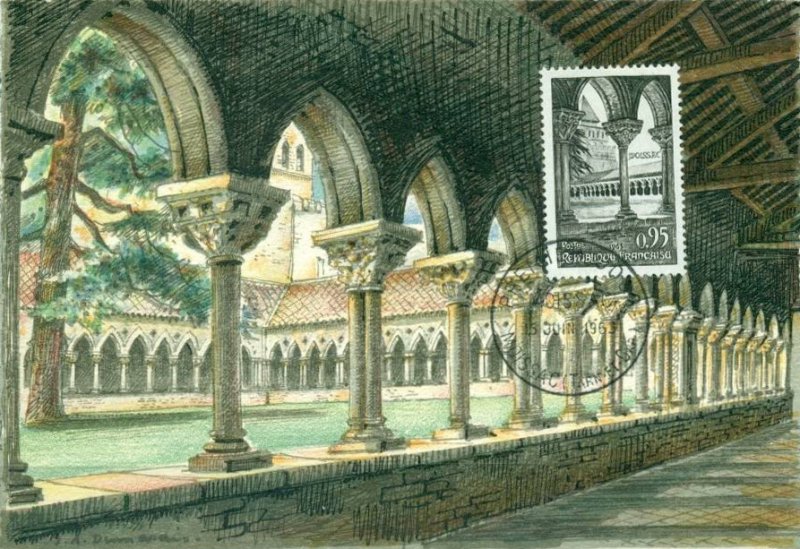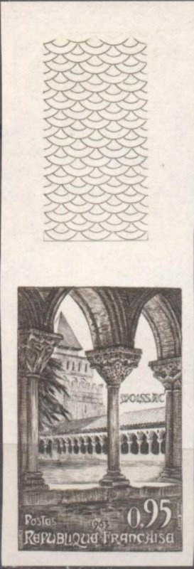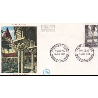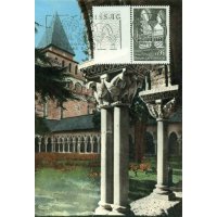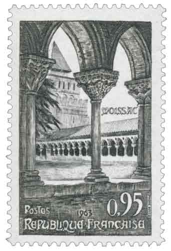 | Commentaire | Le timbre « Moissac », émis en 1963 dans la série touristique d’usage courant, offre une plongée sobre et majestueuse dans le patrimoine roman du Sud-Ouest. D’un ton gris, le visuel se concentre sur un élément central de l’abbaye Saint-Pierre : son célèbre cloître. Arcs sculptés, colonnes fines, ombres croisées — tout respire ici la sérénité d’un lieu conçu pour la méditation et le silence. Il ne s’agit pas d’un panorama, mais d’un fragment choisi avec soin, comme on ouvre un livre à une page précise. L’artiste André Spitz, dessinateur du timbre, a capté l’essence de cette abbaye sans surcharger la scène : l’équilibre des pleins et des vides, la pureté des lignes, tout invite au regard attentif. La gravure, signée Charles Mazelin, renforce cette impression de calme profond. Mazelin, maître de la taille-douce, restitue avec rigueur les volumes et les ombres, comme s’il avait voulu que le spectateur ressente la fraîcheur des pierres au matin. Située dans le Tarn-et-Garonne, l’abbaye de Moissac est un fleuron de l’art roman, connue pour son portail sculpté et son cloître datant du XIe siècle. L’émission de ce timbre en 1963 répond à une volonté claire de La Poste : mettre en valeur des sites moins connus du grand public, mais essentiels à l’identité architecturale et spirituelle de la France. Loin des clichés touristiques, cette vignette postale porte la mémoire d’un lieu de silence, de transmission, de beauté. Aujourd’hui encore, ce timbre est recherché pour sa composition raffinée et son évocation sensible d’un chef-d’œuvre monastique. Il incarne l’art de faire parler les pierres à travers la gravure. ©WikiTimbres |