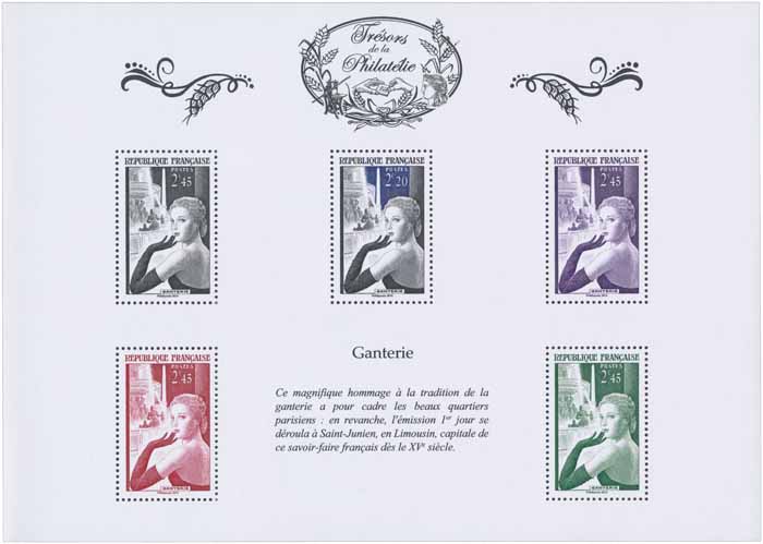 | Commentaire | Une série sur 5 ans, émission annuelle de 10 blocs de 5 timbres dans une pochette cristal chaque bloc se compose de 5 visuels identiques, le timbre central est imprimé en 2 tons et les 4 autres en 1 ton direct La sélection des 50 timbres a été réalisée par un jury |