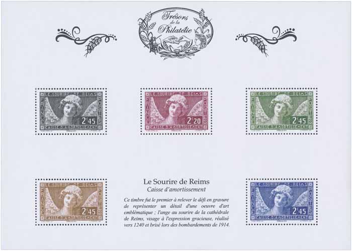 | Commentaire | Une série sur 5 ans, émission annuelle de 10 blocs de 5 timbres dans une pochette cristal chaque bloc se compose de 5 visuels identiques, le timbre central est imprimé en 2 tons et les 4 autres en 1 ton direct La sélection des 50 timbres a été réalisée par un jury |