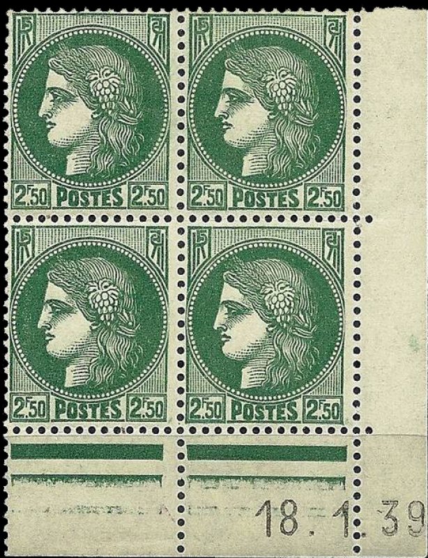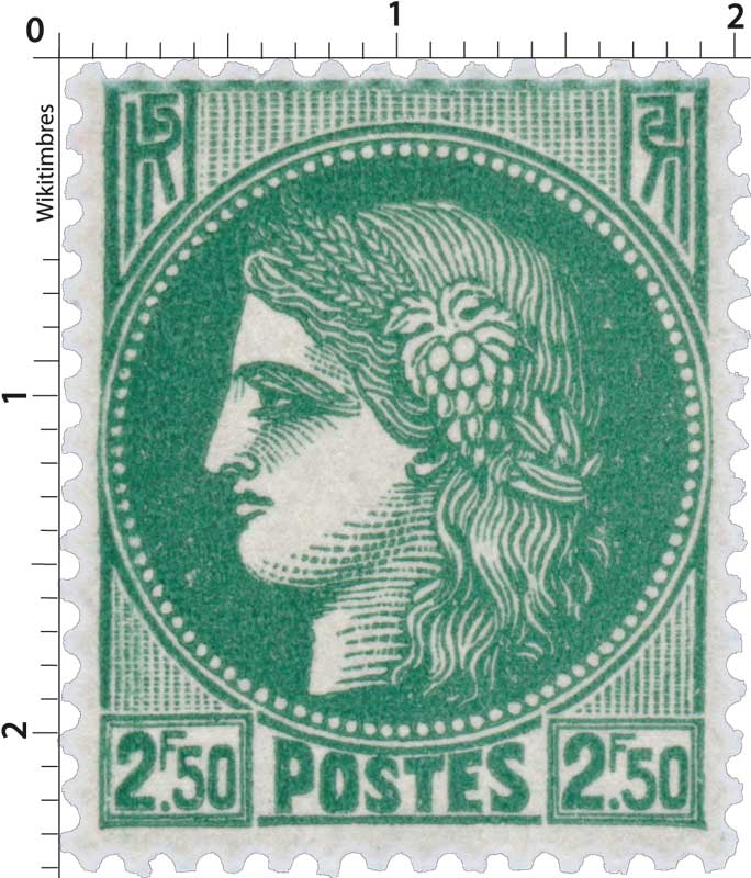 | Commentaire | Cérès de 1938.2e tarif Émis le 17 janvier 1939 en typographie rotative, ce timbre vertical vert est un autre membre de la série d'usage courant au motif intemporel de Cérès, dérivé du dessin de Jacques-Jean Barre et gravé par l'atelier du timbre. Cette valeur de 2,50 Francs était essentielle pour le service postal intérieur, car elle correspondait au tarif d'affranchissement de la lettre recommandée pour le régime intérieur (incluant probablement le port et la taxe de recommandation). Son rôle dans le courrier sécurisé lui a valu un tirage important de 71,51 millions d’exemplaires. Ce timbre, émis juste avant la Seconde Guerre mondiale, a maintenu sa validité jusqu'à son retrait le 18 février 1941, marquant la fin de sa pertinence tarifaire dans un contexte économique en pleine mutation. |