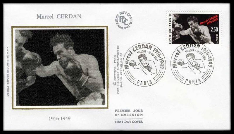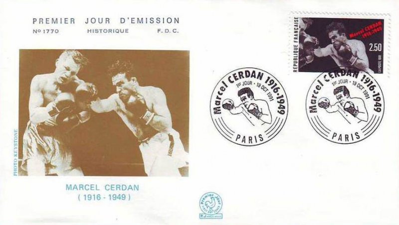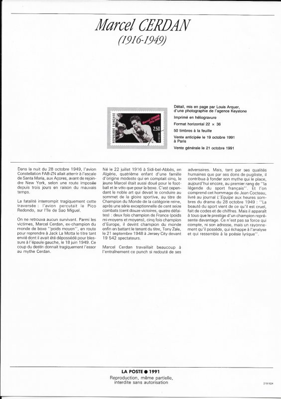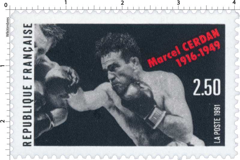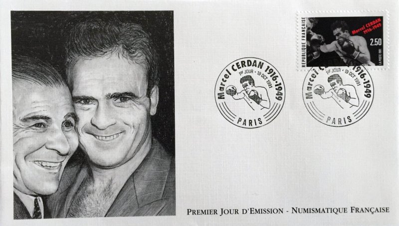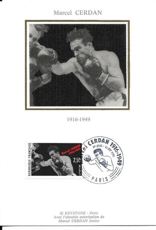 | Description | 75e anniversaire de la naissance de Marcel Cerdan (1916-1949), champion de boxe, né en Algérie |