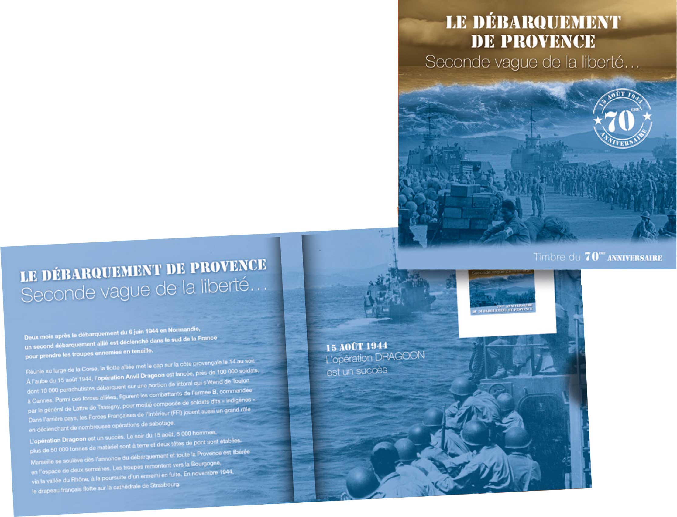 | Commentaire | En savoir plus sur Wikipédia : débarquement de Provence Deux mois après le Débarquement en Normandie, le second débarquement allié a lieu le 15 août 1944 sur la côte provençale, entre Toulon et Cannes. L’opération Anvil Dragoon réunit 100 000 soldats, dont 10 000 parachutistes. Parmi les troupes alliées, l’armée B du général de Lattre de Tassigny, composée pour moitié de soldats « indigènes ». L’opération est un succès et les Alliés vont pouvoir prendre l’ennemi en tenaille. La Provence est libérée en deux semaines et les Alliés remontent la vallée du Rhône vers la Bourgogne. La France sera entièrement libérée du joug nazi en novembre 1944. |