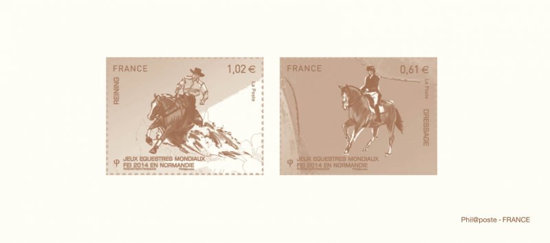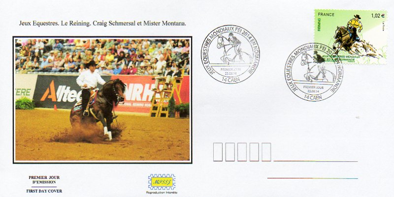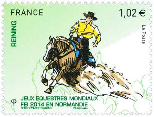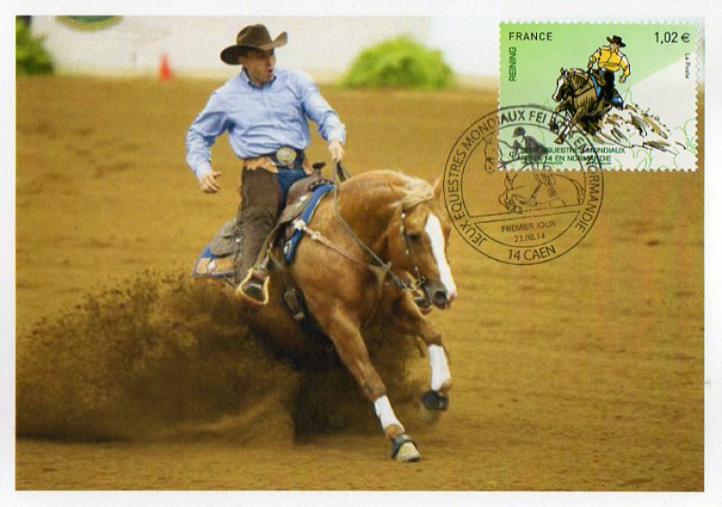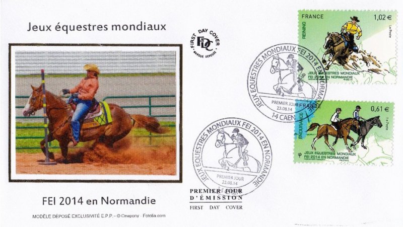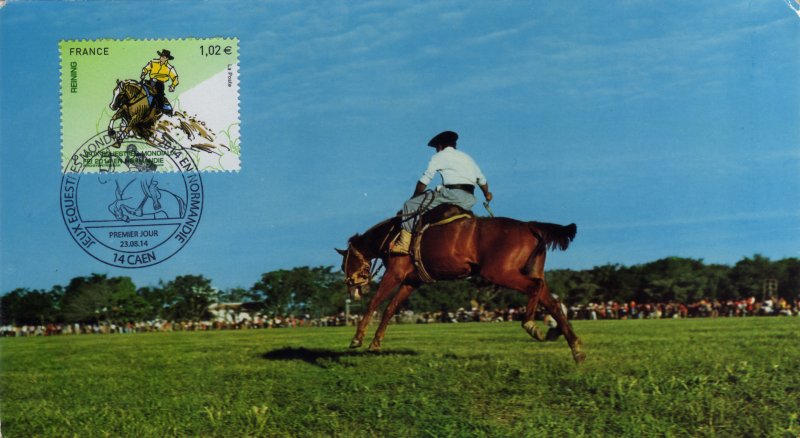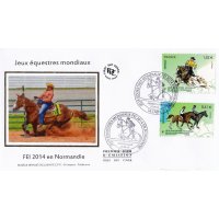 | Commentaire | Timbre à date “Premier Jour” conçu par B. Perchey et K. Petrossian En savoir plus sur Wikipédia : Jeux équestres mondiaux de 2014 |
