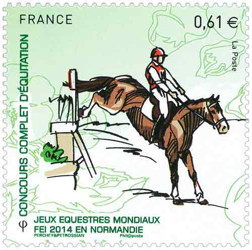 | Commentaire | Timbre à date “Premier Jour” conçu par B. Perchey et K. Petrossian En savoir plus sur Wikipédia : Jeux équestres mondiaux de 2014 |