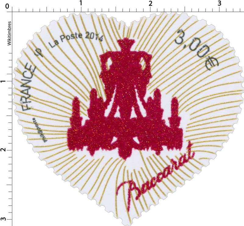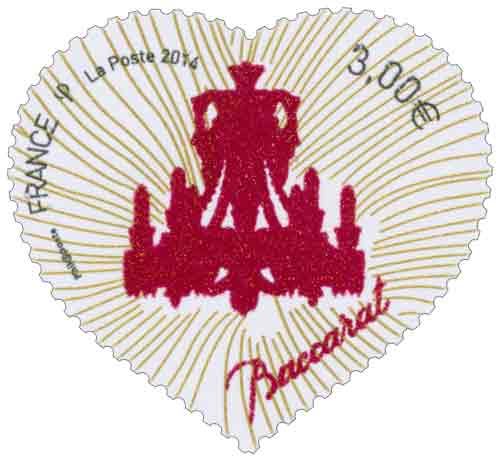 | Commentaire | Valeur faciale des timbres : 3,00 € Impression : Mixte taille-douce et sérigraphie avec poudre de cristal de Baccarat Fondée en Lorraine en 1764, sur autorisation du Roi Louis XV, la plus illustre Manufacture de cristal au monde a traversé les époques pour devenir un symbole d’excellence et d’Art de Vivre. Baccarat, un nom qui résonne comme l’écho de lieux extraordinaires, de fêtes inoubliables et de pièces d’exception. Les oeuvres prestigieuses de Baccarat, acclamées et récompensées à l’occasion des Expositions Universelles de Paris depuis 1867, illuminent toujours palais et lieux d’exception. Les créations Baccarat pérennisent l’élégance autant que l’excellence du savoir-faire. Un savoir-faire à l’avant-garde du progrès, transmis au fil des siècles par une élite d’artisans et reflet d’un héritage incomparable. Inspirés par les secrets d’alchimistes liés aux éléments, souffleurs, tailleurs, graveurs et doreurs mettent leur inimitable talent au service de la perfection. Chaque création incarne une promesse ultime, une expérience à vivre et avant tout à partager. Depuis 250 ans, Baccarat demeure plus que jamais le symbole d’un luxe inégalable et éternellement jeune, poursuivant sa vocation d’élite, à l’assaut des rêves, à la pointe de la modernité. Le timbre et le bloc sont imprimés en mixte taille-douce et sérigraphie. Pour la fabrication du Bloc Coeur Baccarat, le fond de couleur or et la perforation ont été faits en taille douce, puis le reste du bloc en sérigraphie. Pour la dépose du noir et du mélange de poudre de cristal et d’une encre rouge, l’impression en sérigraphie s’est faite sur la machine Sramag 628 : l’association de poudre de cristal et d’encre rouge a donné une encre épaisse ce qui a nécessité une trame plus grosse et donc un rendu spécifique. Il a fallu trouver un compromis pour obtenir un certain volume tout en gardant le détail des éléments : une impression correcte et brillante du fond et du motif, et un texte parfaitement lisible. |