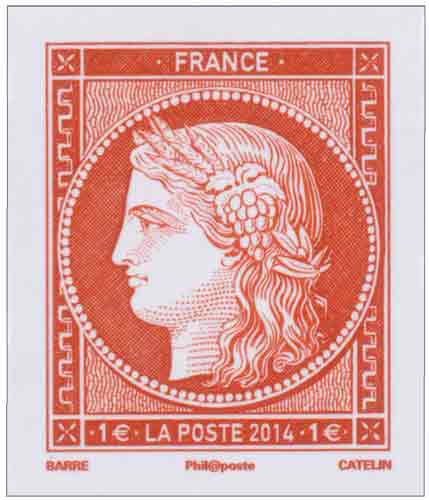 | Commentaire | Timbre à date “Premier Jour” conçu par Elsa Catelin Existe en vermillon, carmin en taille douce ou typo Visuel : Cérès, déesse de l'agriculture, des moissons et de la fertilité. |