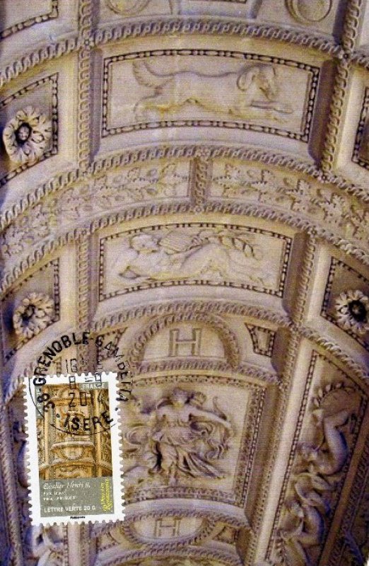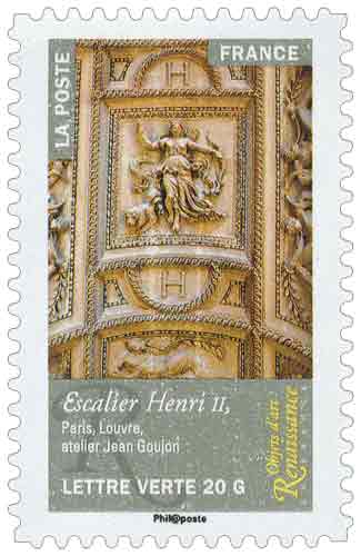 | Description | Carnet de douze timbres-poste autocollants, "Objets d'art-Renaissance en France" |