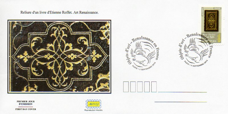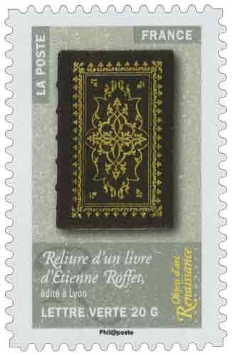 | Description | Carnet de douze timbres-poste autocollants, "Objets d'art-Renaissance en France" |