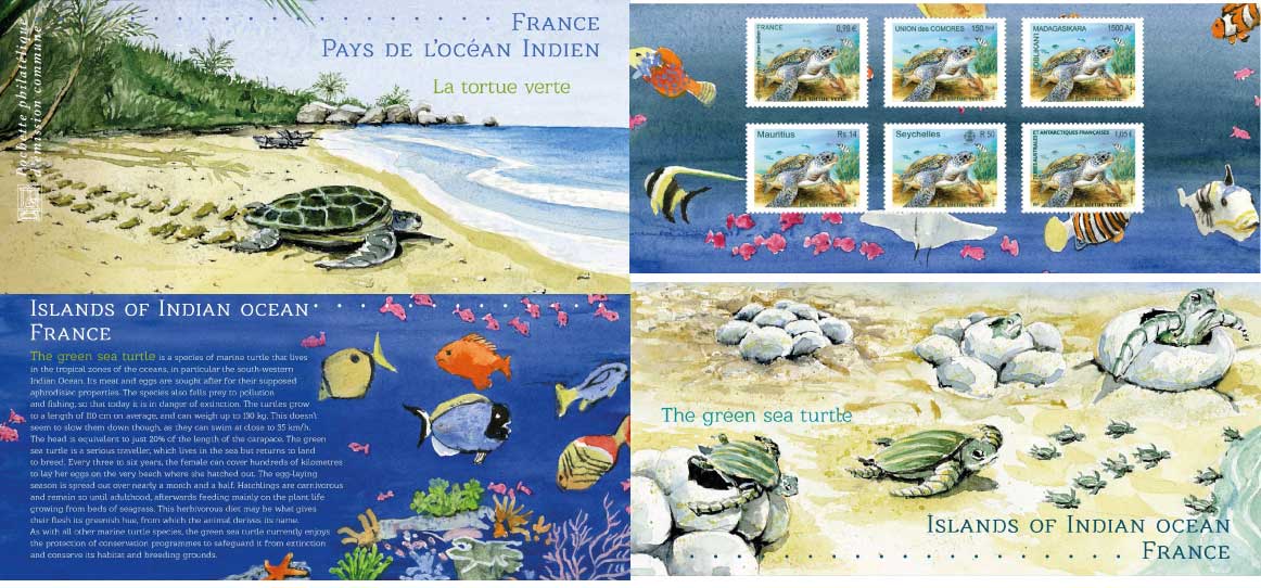 | Description | Pochette France et TAAF - Pays de l’Océan Indien : la tortue verte |