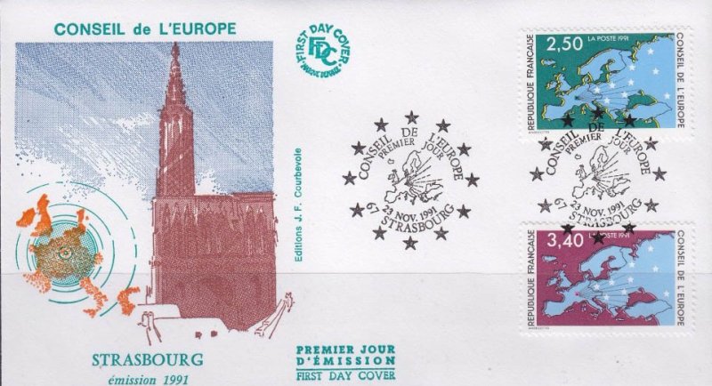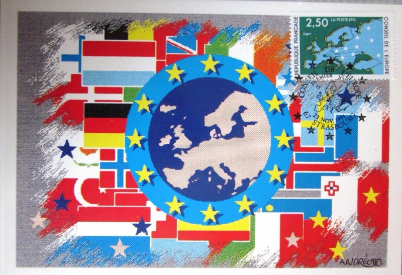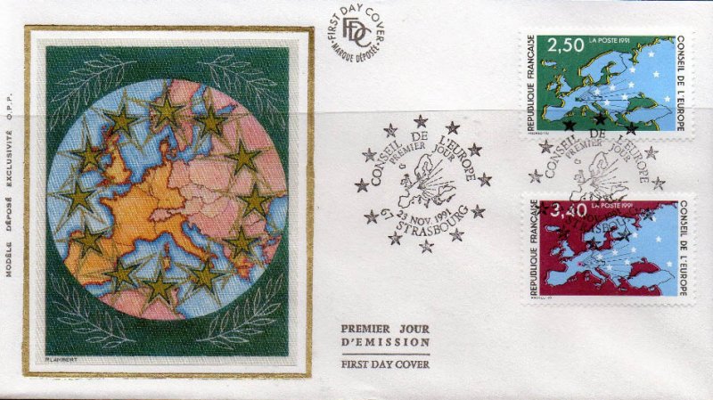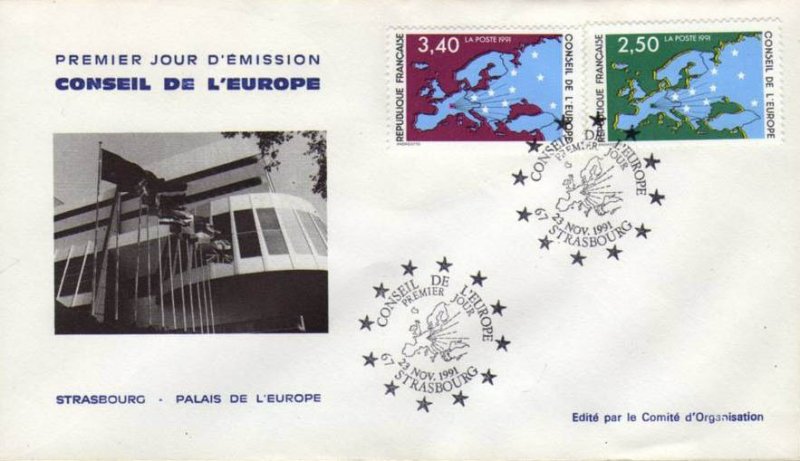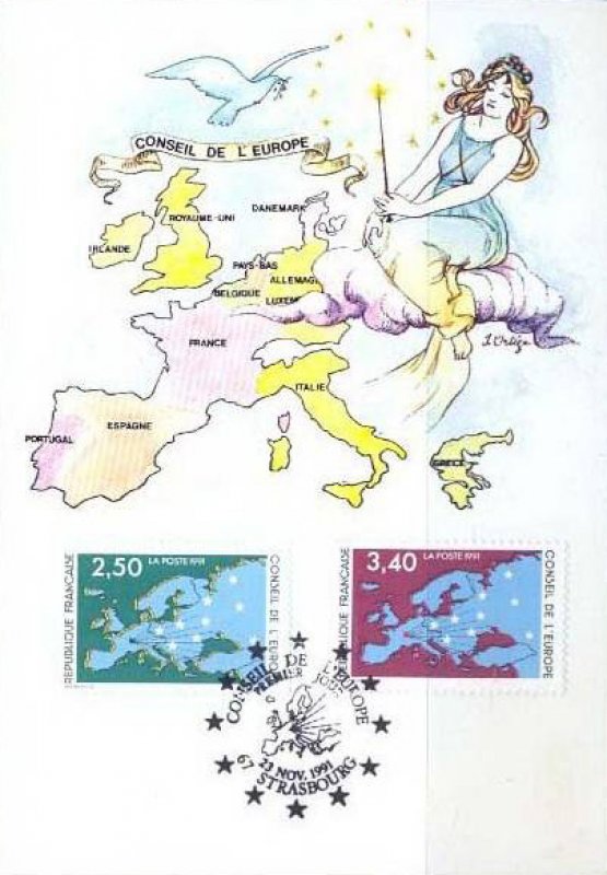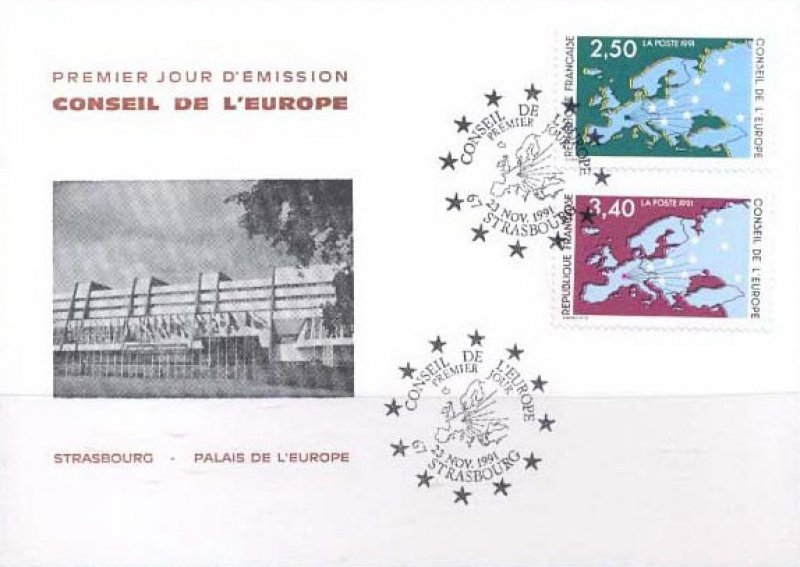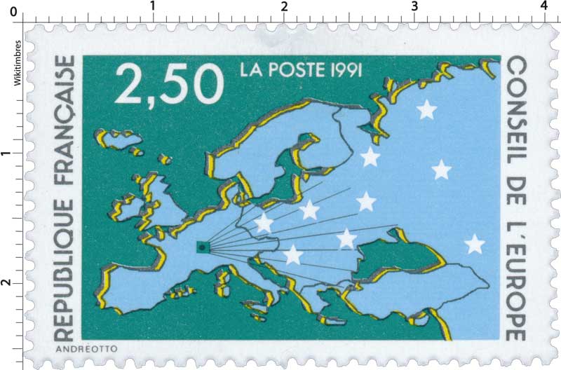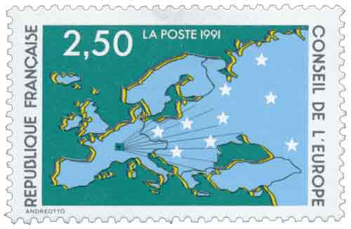 | Description | Conseil de l'Europe. Carte d'Europe et étoiles |