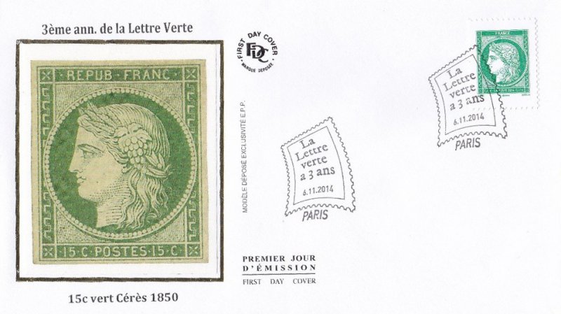 | Commentaire | Timbre à date “Premier Jour” conçu par Stéphanie Guinéa Visuel : Cérès, déesse de l'agriculture, des moissons et de la fertilité. |