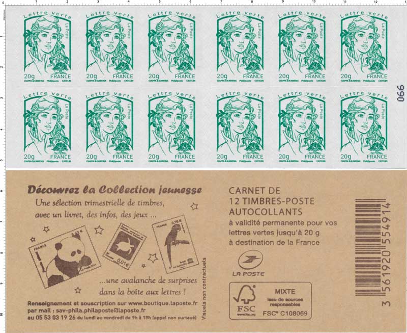| Description | Carnet de 12 TVP lettre verte |