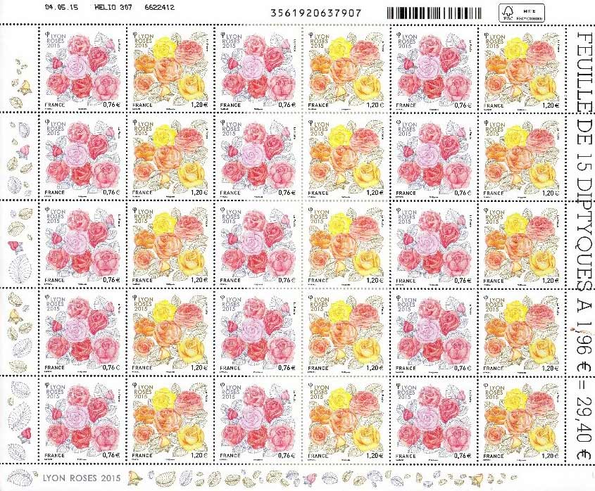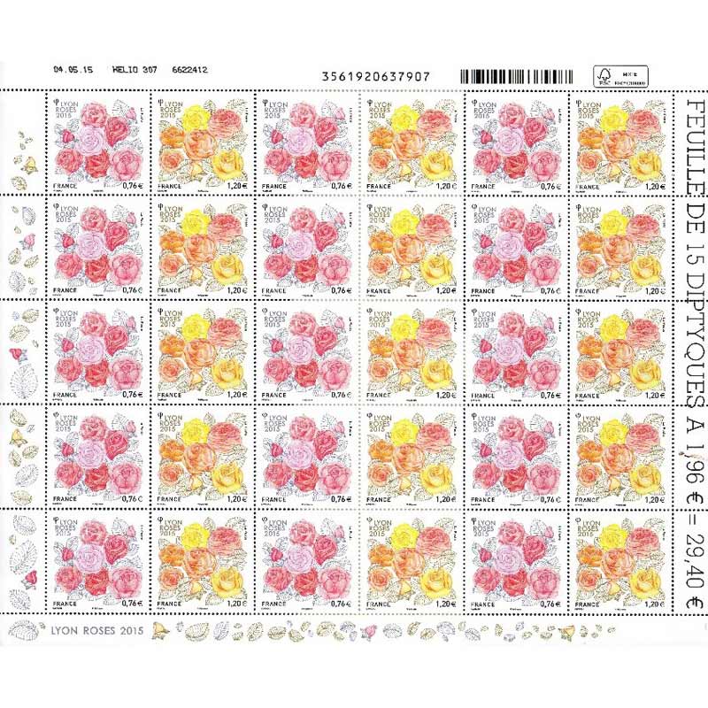 | Description | Feuille gommée de 15 diptyques : Congrès mondial des Sociétés de roses 2015 - Lyon |