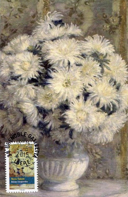 Description du visuel : représentation de l'oeuvre "Reines Marguerites dans un vase" de Marie Duhem, huile sur toile de 46 x 55 cm née à Guemps (62-P.de C.) le 18 mars 1871 et décédée à Douai (59-Nord) le 9 juillet 1918 Elle forme avec son mari un couple d’artistes unis partageant quêtes esthétiques et passion pour la collection. Ils acquièrent ainsi un ensemble d’oeuvres impressionnistes et postimpressionnistes de premier ordre. Exposant à l’étranger (Londres, Rome, Saint-Pétersbourg), Marie Duhem est une femme peintre impliquée dans la vie culturelle de son époque : tout comme son mari, elle entretient des liens amicaux avec Camille Pissaro (1830-1903), Auguste Rodin (1840-1917) ou encore Henri Le Sidaner (1862-1939). Leur fils unique, Rémy, peintre prometteur, est tué le 20juin 1915, à l'assaut des Eparges (55-Meuse). Très affectée, Marie succombe d’une tumeur, dans sa maison de Douai. Le critique d’art Camille Mauclair (1872-1945), grand ami du couple, retrace l’oeuvre dessinée et peinte des deux artistes défunts, dans un ouvrage à l’iconographie très documentée, intitulé Marie Duhem, Rémy Duhem : hommage, paru aux éditions Jacomet. |