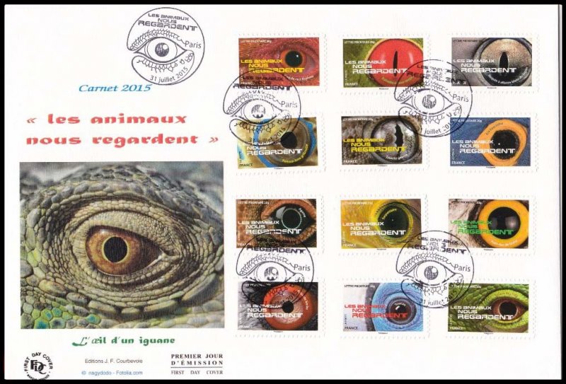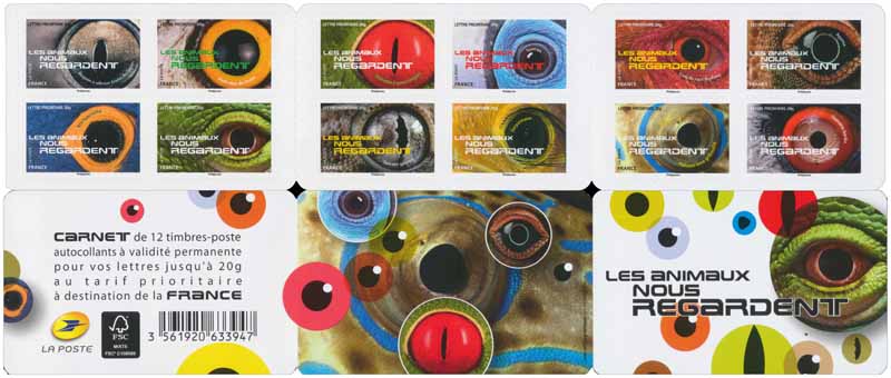 | Commentaire | Il est illustré par des yeux d'animaux, centrés sur leur pupille. Ces regards expressifs symbolisent tous les animaux menacés d'extinction, même si ceux qui ont été choisis pour illustrer les timbres ne sont pas nécessairement menacés. Ces regards nous renvoient à nos responsabilités, nous questionnent sur l'avenir des animaux et le nôtre. L'Union Internationale pour la Conservation de la Nature met à jour en permanence la liste rouge des espèces menacées. Ainsi, une espèce de mammifère sur quatre est aujourd'hui menacée d'extinction au niveau mondial, un oiseau sur huit, un amphibien sur trois. |