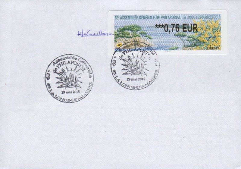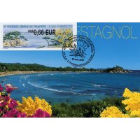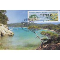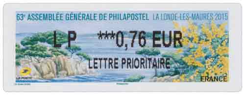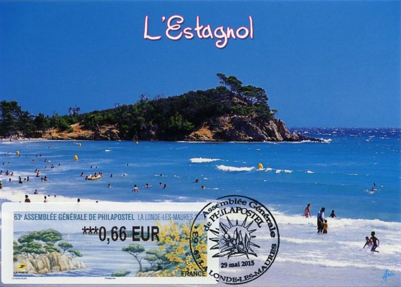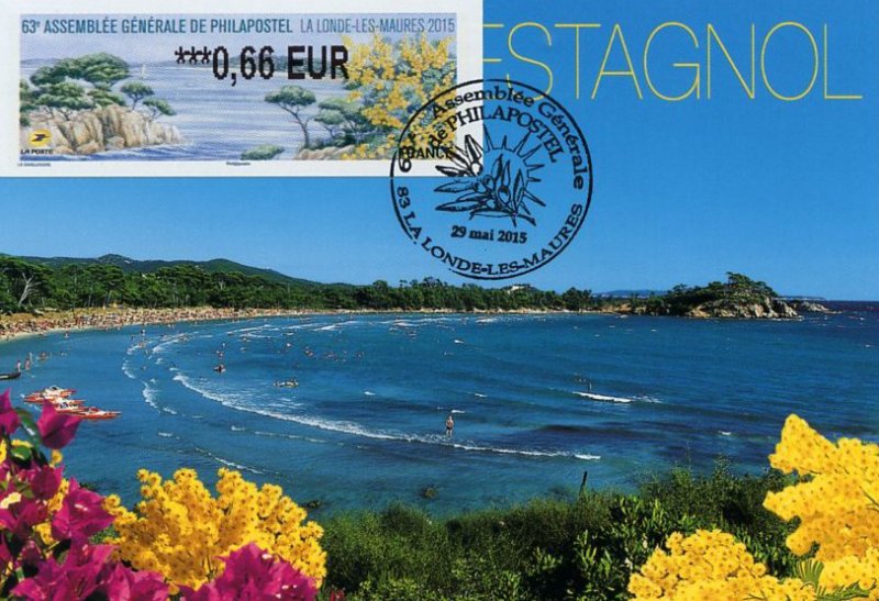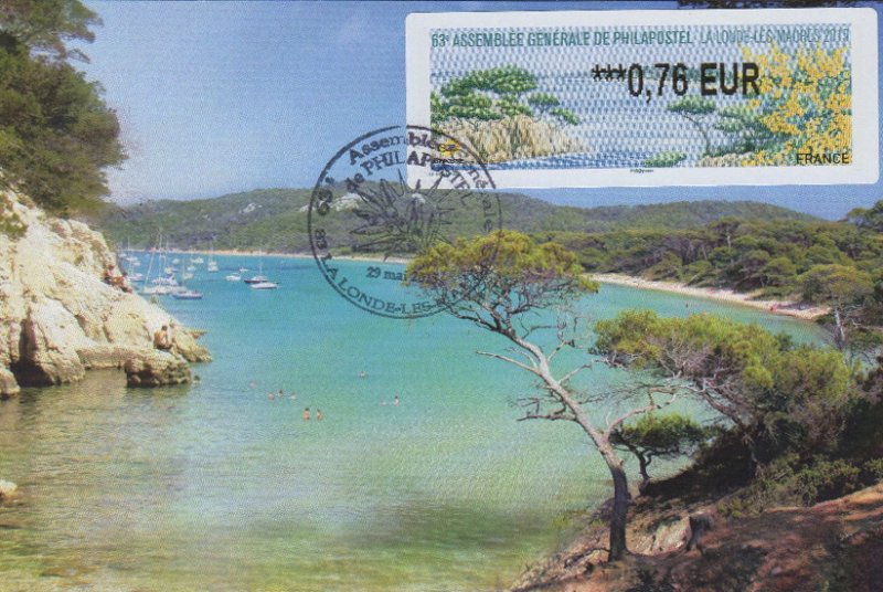 | Commentaire | Visuel : la belle côte varoise, les pins maritimes et pins d'Alep (Pinus halepensis) sculptés par le vent et le mimosa (Acacia dealbata) d'un jaune lumineux. Il est réputé en parfumerie et a contribué à l'essor de la ville de Grasse au XIXe siècle. Il a donné son nom à la commune de Bormes-les-Mimosas (Var). |
