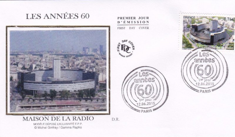 | Commentaire | Dans la même série voir 2014 Les années 50 En savoir plus sur Wikipédia : Années 1960 En savoir plus sur Wikipédia : Maison de la Radio (France) La maison de la Radio, surnommée "maison ronde", parfois appelée la "maison de Radio France" est constituée d'une couronne de 500 mètres de circonférence et d'une tour de 68 mètres de hauteur, en son centre. Elle abrite 1 000 bureaux et 61 studios d'enregistrement. Elle est située avenue du Président-Kennedy, dans le 16e arrondissement de Paris. C’est, depuis 1975, le siège de la société Radio France. C'était également le siège social de FR3 de 1975 à 1998. Le bâtiment devient tellement emblématique de l'ORTF, qu'après l'éclatement des radios publiques françaises en 1974, personne ne se résout à l'abandonner, lorsqu'en 2003 la préfecture de Paris le considère non conforme aux règles de sécurité en vigueur. Il faut le rénover d'urgence… Les travaux, engagés par tranches, sont actuellement en cours, et devraient se terminer en 2016. |