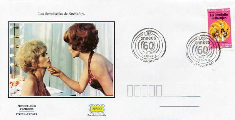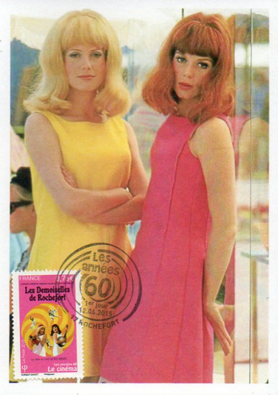 | Commentaire | Dans la même série voir 2014 Les années 50 En savoir plus sur Wikipédia : Années 1960 En savoir plus sur Wikipédia : Les Demoiselles de Rochefort Les années 1960 en France sont synonymes de révolution dans l'univers du septième art comme dans beaucoup d'autres. Les précurseurs en 1959 de la nouvelle impulsion cinématographique sont des réalisateurs comme François Truffaut, Alain Resnais, ou bien encore Jean-Luc Godard. Mais, bien que son apport bénéfique soit aujourd'hui unanimement reconnu, la grande liberté prise lors des tournages de ces mises en scène n'est, à l'époque, pas appréciée par plusieurs traditionalistes du cinéma, habitués à respecter un certain nombre de règles. Ce qu'ils n'admettent pas, c'est de voir ce petit groupe de jeunes critiques, désigné sous le nom de nouvelle vague, qui se lance dans la réalisation en pensant que désormais tout est possible. Or, c'est justement grâce à l'audace de ces nouveaux venus que le septième art, alors en train de lentement se scléroser, revit et découvre un nouvel horizon à conquérir. "Les Demoiselles de Rochefort" : film musical français écrit et réalisé par Jacques Demy (1931-1990 – cimetière du Montparnasse), sorti en 1967 avec Françoise Paulette Louise Dorléac (1942-1967- accident) et sa soeur Catherine Fabienne Dorléac (dite Catherine Deneuve, 1943). |