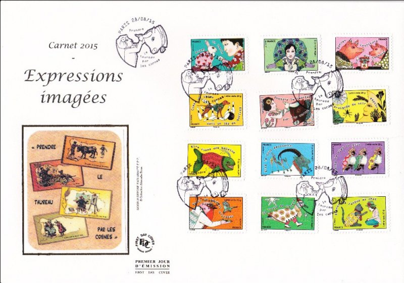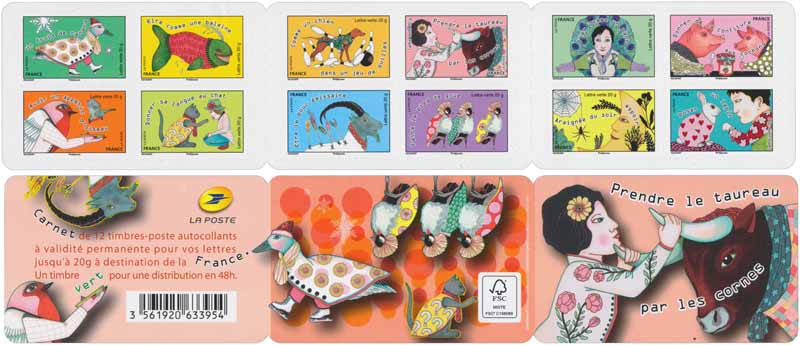 | Description | Carnet de 12 timbres illustrés par des dictons ou expressions connus qui font référence à des animaux |