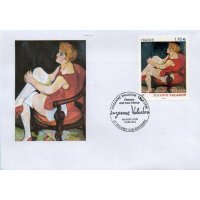 Beaucoup d'indices sur ce tableau font penser qu'il ne s'agit pas d'une femme dans son intimité mais plutôt la représentation d'une prostituée: Timbre à date “Premier Jour” mis en page par B. Ghiringhelli |