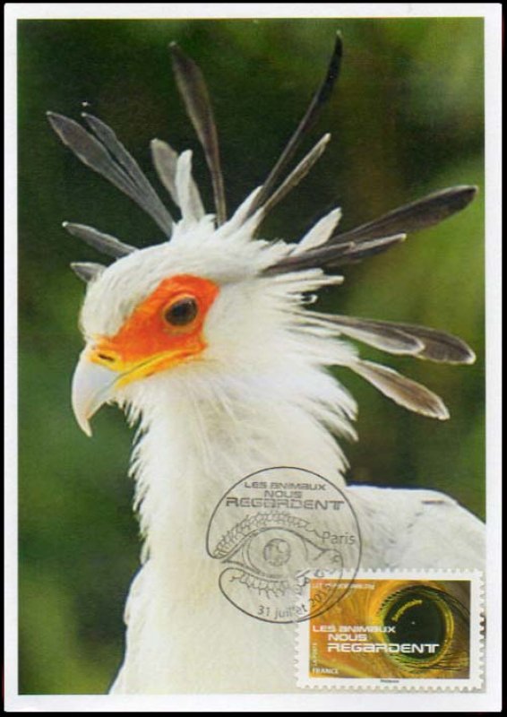 | Commentaire | En savoir plus sur Wikipédia : Serpentaire (oiseau) Serpentaire, ou "secrétaire" désigne plusieurs espèces de rapaces qui ont en commun une ophiophagie (consommer des serpents pour se nourrir). Jusqu'à 1 m de haut, 2 m d'envergure, 4 kg. Il se tient au sol, il ne vole que pour faire sa parade nuptiale. Malgré tout, ses ailes sont puissantes. Ses pattes sont longues et couvertes de plumes jusqu'à l'articulation, on croirait un échassier. Mais il appartient sans contredit à la famille des faucons. Il porte sur sa tête une drôle de huppe qui le fait ressembler à un secrétaire. De là vient son nom. Pour chasser, il se sert de ses pattes fortes et musclées. Il marche dans la savane et lorsqu'il repère une proie, il la frappe avec ses pattes jusqu'à ce qu'elle meure. Il l'avale tout rond, sans la mastiquer peu importe sa longueur. Il vit environ 20 ans. |