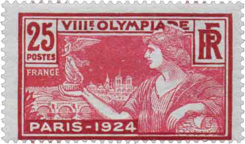 | Commentaire | Visuel : une femme tenant une victoire ailée, sur fond de l'Ile de la Cité, avec Notre-Dame de Paris Remarque : erreur terminologique : "Olympiade" il s'agit des VIIIe Jeux Olympiques de 1924 à Paris Démonétisé le :30/09/1924 Émis le 1ᵉʳ avril 1924, ce timbre commémore les Jeux olympiques d’été de Paris, organisés dans le cadre de la VIIIᵉ Olympiade. Conçu par Becker et gravé par G. Daussy, il est imprimé en typographie, au format 40 × 24 mm, dentelé 13½ × 14 et tiré en feuilles de 75. La valeur faciale de 25 centimes est mise en avant par une bichromie rouge carminé et rouge, typique des émissions sportives de cette série. Le timbre sera retiré le 1ᵉʳ novembre 1924, après la clôture des Jeux. Cette Olympiade parisienne marque les adieux de Pierre de Coubertin au mouvement olympique et reste célèbre pour les performances de Paavo Nurmi, Johnny Weissmuller et Roger Ducret, figures majeures des compétitions de 1924. |