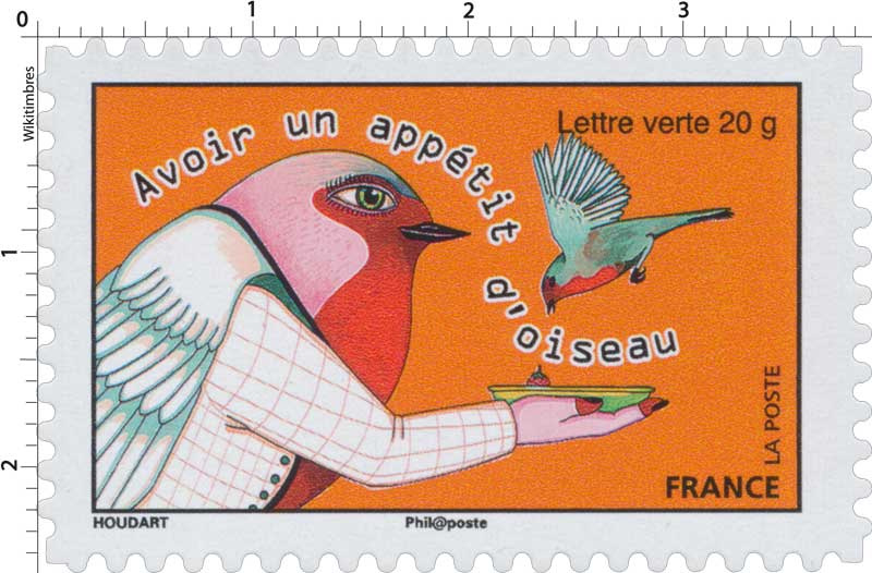| Description | Provenant du carnet de 12 timbres illustrés par des dictons ou expressions connus qui font référence à des animaux |