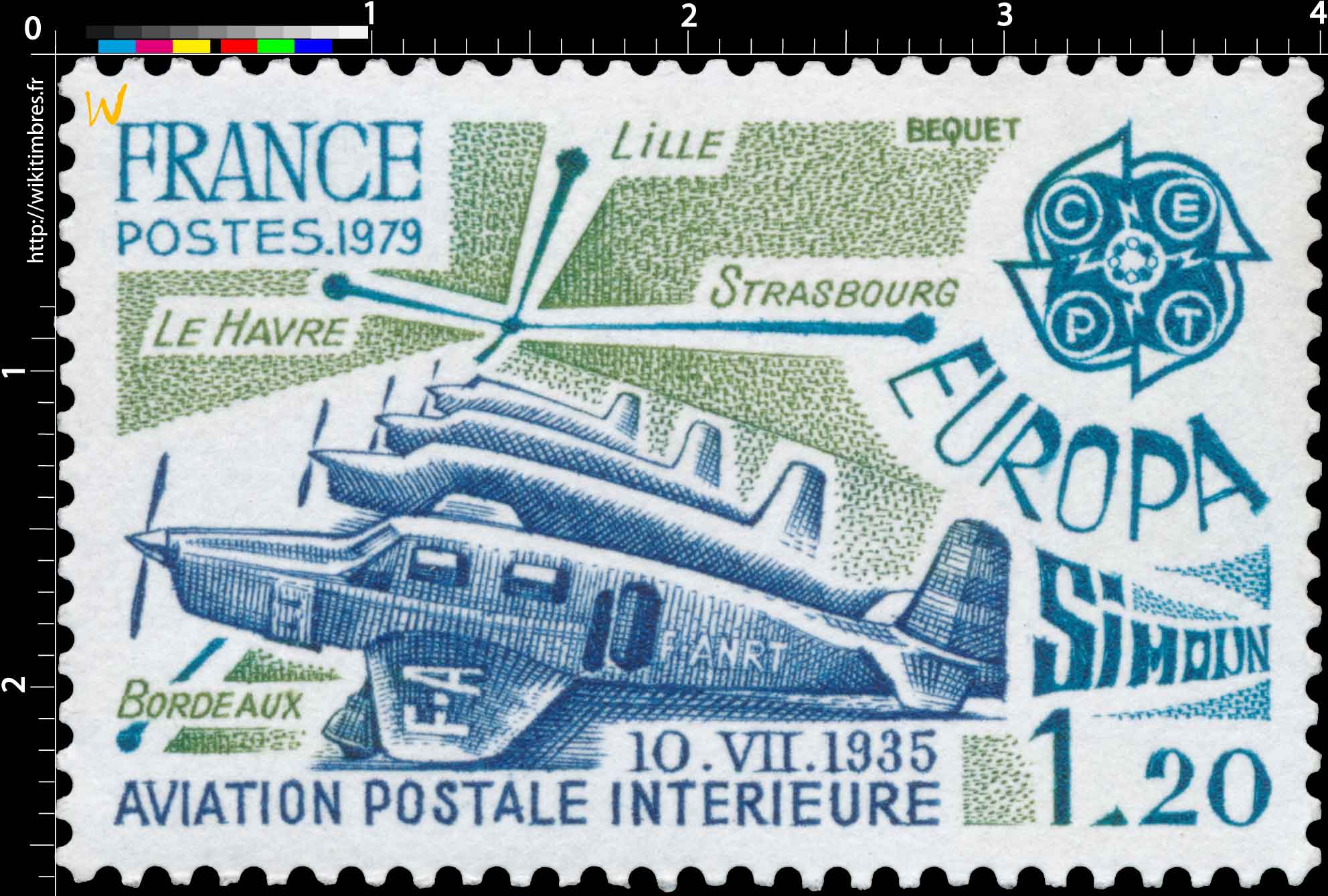 1979 EUROPA CEPT AVIATION POSTALE INTÉRIEURE 10.VII.1935 LILLE - LE HAVRE - STRASBOURG - BORDEAUX