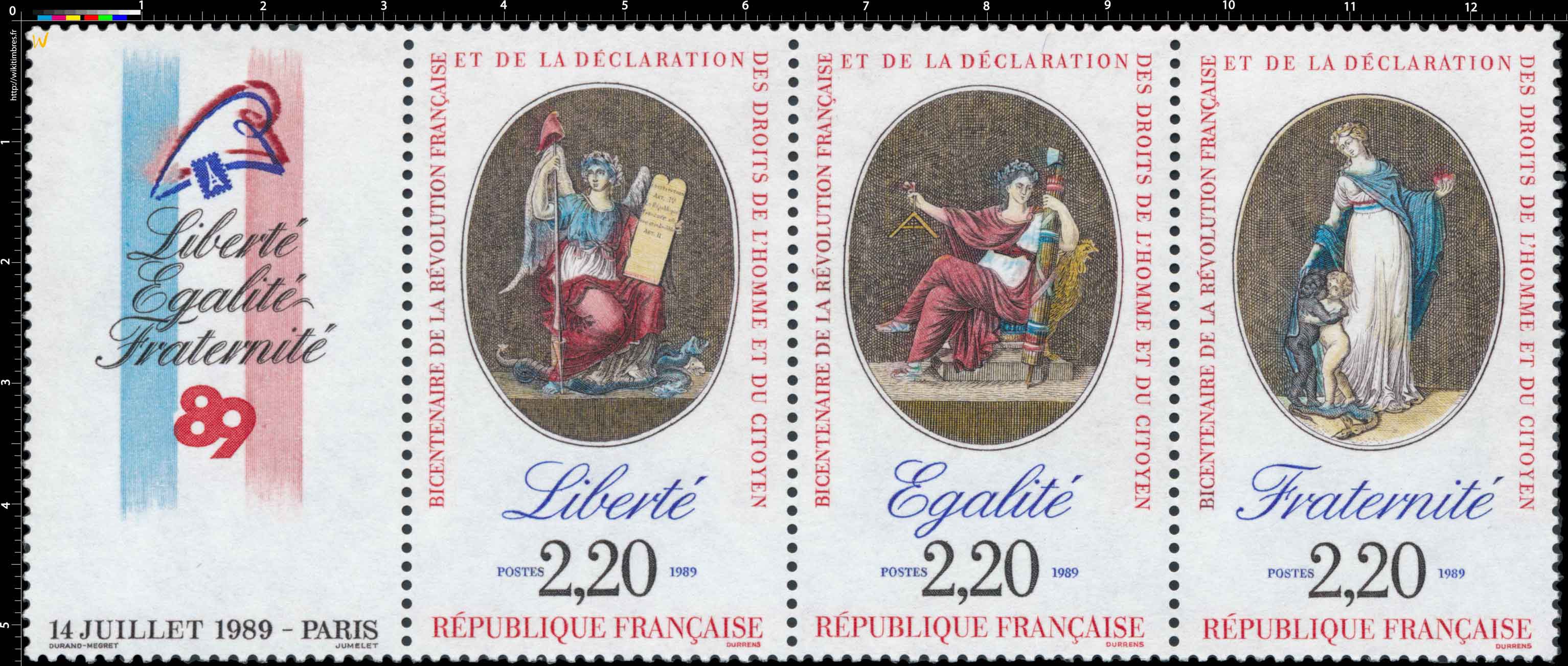 1989 BICENTENAIRE DE LA RÉVOLUTION FRANÇAISE ET DE LA DÉCLARATION DES DROITS DE L'HOMME ET DU CITOYEN Liberté Égalité Fraternité