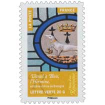 Timbre : 2014 Objets d'art – Renaissance en France – Vitrail à Blois, l'Hermine, emblème d'Anne de Bretagne